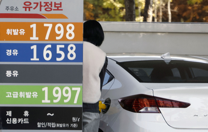 한국석유공사 유가정보시스템 오피넷에 따르면 11월 둘째 주(10∼13일) 전국 주유소 휘발유 평균 판매가는 지난주보다 L당 18.4원 오른 1천703.9원이었다. 경유는 전주 대비 29.8원 오른 1천598.0원을 기록했다.