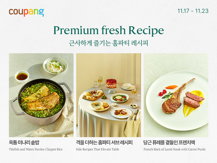 쿠팡은 17일부터 23일까지 ‘프리미엄 프레시위크’를 열고 연말 상차림 수요에 맞춘 고급 식재료 300여 종을 선보인다. 프리미엄 한우 1++ㆍ활랍스터ㆍ활전복 등과 치즈ㆍ버터ㆍ디저트 등을 소개한다. 프리미엄 프레시는 로켓프레시가 올해 2월 선보인 고급 신선식품 서비스로 15개 이상 브랜드가 이번 행사에 참여한다. 로켓프레시의 당일ㆍ새벽배송을 기반으로 신선한 상품을 빠르게 제공한다. 행사 기간 프리미엄 프레시 전 품목은 최대 20% 즉시 할인된다. 제휴카드 사용 시 최대 20% 추가할인을 적용한다.