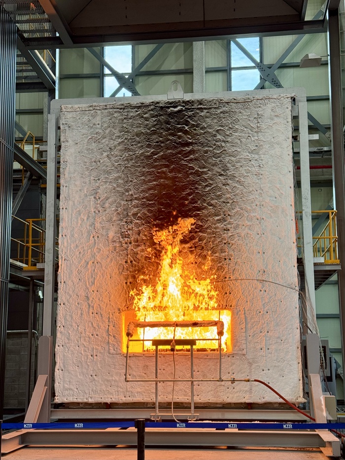 특히 건설업계의 관심이 큰 ‘실대형 외장재 시험장비’도 갖췄다. 건물 외벽 전체를 모사해 화염이 수직 확산하는 속도와 패턴을 평가한다. 샌드위치패널 화재 사고 이후 강화된 외단열재 규제(KS F 8414, NFPA 285 등)에 대응할 핵심 장비로 꼽힌다.