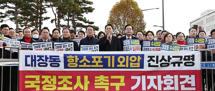 그는 국회에서 열린 최고위원회의에서도 대장동 항소 포기에 대통령실이 개입했다는 의견이 다수라는 한 여론조사를 언급한 뒤 “국민적 의혹 해소를 위해 국정조사와 특검이 필요하다는 것을 다시 보여줬다. 더불어민주당은 꼼수 부리지 말고 특위를 만들어 국정조사에 협조하라”고 강조했다.