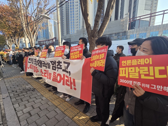 이날 집회에 참가한 김주일 홍콩반점 낙성대점 가맹점주는 “전가협에 소속된 점주는 더본코리아를 공정거래위원회에 신고한 연돈볼카츠 점주 단 5명”이라며 “이들의 악의적인 공격으로 생계를 위협받고 있다”고 말했다. 앞서 더본코리아 브랜드를 운영하는 전가협 소속의 점주들과 일부 시민단체들은 백 대표가 출연하는 ‘남극의 셰프’ 방송을 앞두고 방송 보류와 출연 장면 삭제 등을 요구했다.