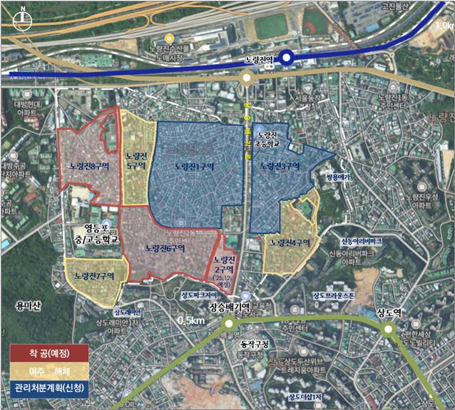 앞으로 노량진 재촉지구 8개 구역은 기준 용적률 10% 추가 상향, 법적 상한 용적률 1.2배 확대 등 재정비촉진사업(재촉사업) 규제 혁신으로 사업성 개선, 정비사업 인허가 절차를 개선하는 신통기획 2.0으로 사업 기간 단축 등을 모두 적용받게 된다.