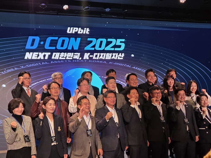 | 19일 오후 서울 여의도 페어몬트 앰배서더 호텔에서 열린 가상자산 컨퍼런스 ‘D-CON 2025’에서 참가한 인사들이 기념촬영을 진행하고 있다./사진=김동섭 기자 |