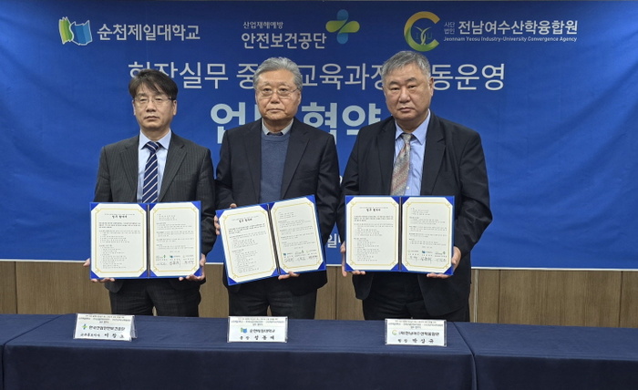 협약은 순천제일대·한국산업안전보건공단·(사)전남여수산학융합원이 주체가 돼 지역 산업 맞춤형 전문인력을 양성하고, 지역 산업 생태계와 산학관 협력 기반 강화를 목적으로 추진됐다.
