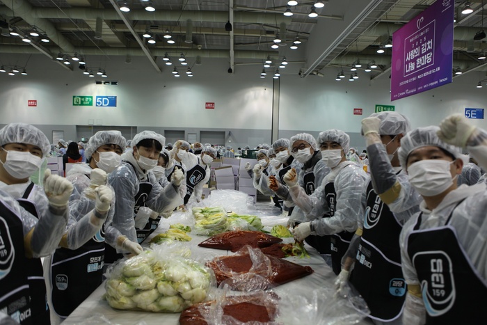 ‘소속 임직원들 19일 벡스코 제2전시장에서 김장 나누기 행사 진행’