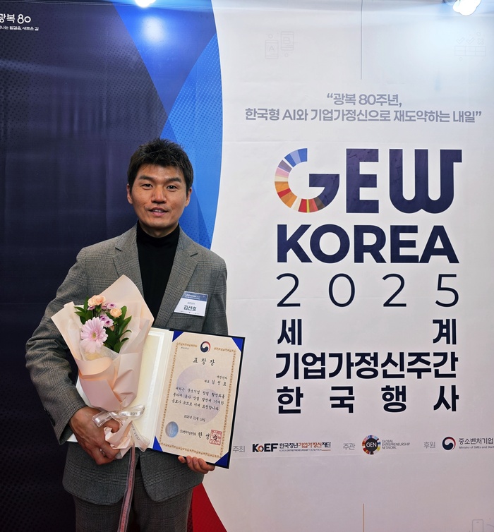 김선호 새천년카 대표가 지난 18일 페어몬트 앰버서더 호텔에서 열린 ‘2025 세계 기업가정신 주간’ 행사 시상식에서 청년 기업인 부문 중소벤처기업부 장관상을 수상했다.