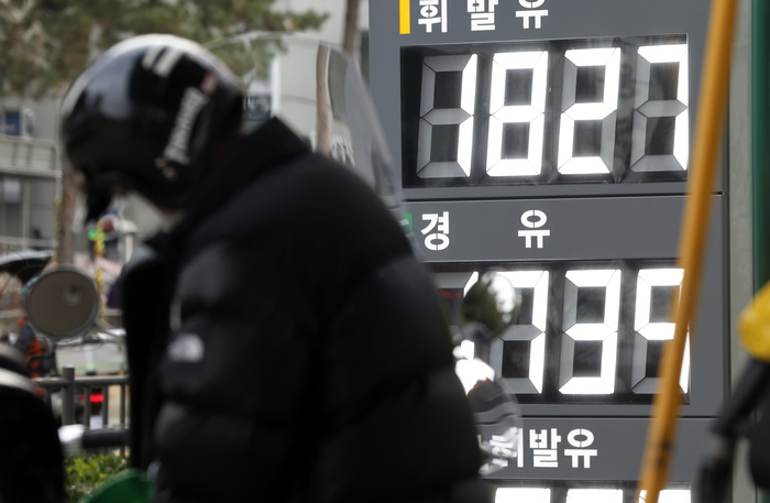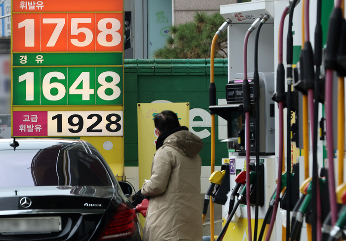 23일 서울시내의 한 주유소를 찾은 시민이 차량에 주유를 하고 있다.