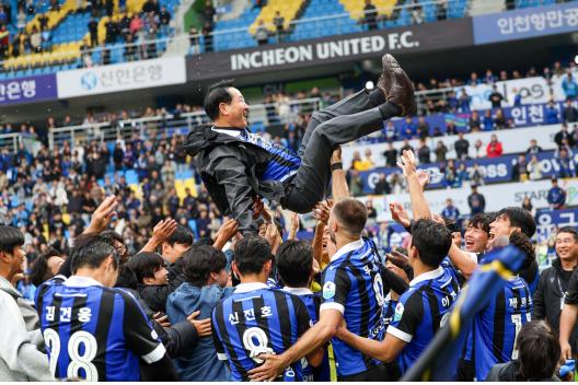 [대한경제=박흥서 기자]2025년 11월 23일, 올 시즌 마지막 홈경기가 펼쳐진 인천축구전용경기장은 뜨거운 환호로 가득 찼다. 이날 청주FC와의 경기를 끝으로 인천유나이티드는 2025 K리그2 우승컵을 거머쥐며, K리그1 복귀를 이뤄냈다.