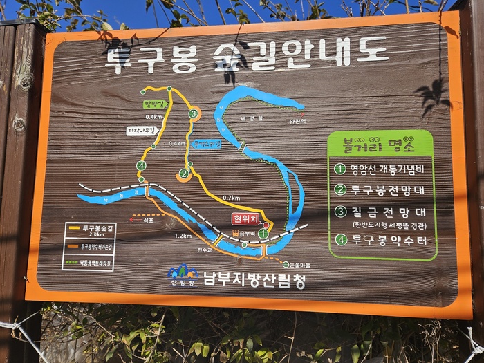| 봉화군 석포면, ‘가을 관광명소 7선’ 선정… 단풍 관광지로 부상(투두봉 안내표지판)) / 사진 : 봉화군청 제공 |