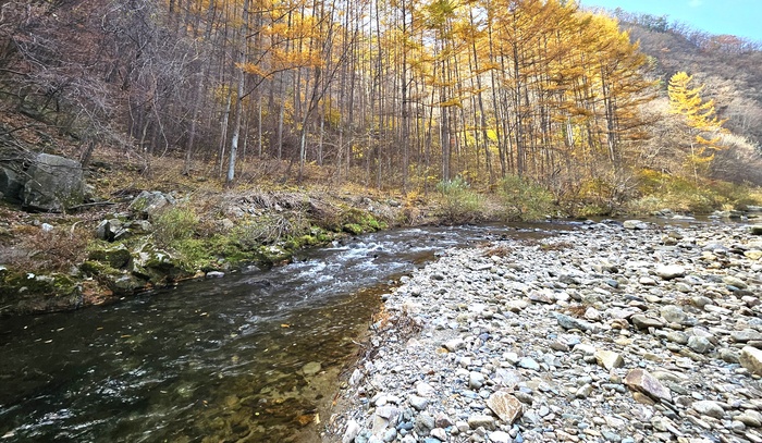 계곡과 단풍이 어우러진 가을 풍경으로 주목받는 곳이다. 여름철 물놀이 장소로 잘 알려져 있으나, 10월 전후 노란 단풍이 계곡에 반사되며 독특한 경관을 만들어낸다. 주차장·간이화장실 등 편의시설이 갖춰져 연간 500명 이상이 찾는다.