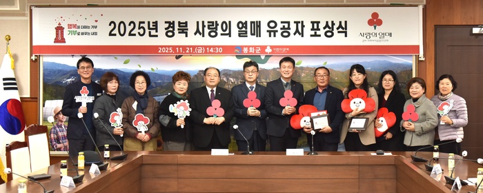경북사회복지공동모금회는 11월 21일 봉화군청에서 ‘2025년 찾아가는 이웃돕기 유공자 포상식’을 열고, 지역사회 나눔 문화 확산에 기여한 유공자와 착한가게 업소를 격려했다.