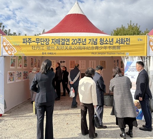 또한 무단장시 실무진은 ‘제29회 파주장단콩축제’ 개막식에 참석했으며, 축제 기간 중 운영된 ‘파주-무단장 자매결연 20주년 기념 청소년 서화전’ 전시 공간을 통해 무단장시 청소년들이 ‘파주-무단장 우정’을 주제로 제작한 그림과 서예 작품을 소개했다.