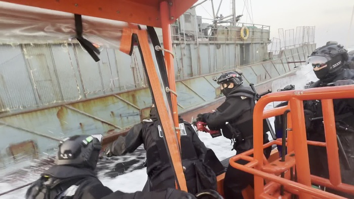 해양경찰은 도주하는 어선에 등선 방해를 위해 설치된 와이어를 절단하고 쇠창살을 피해 접근해 철조망 펜스까지 제거한 끝에 선내 진입했으며, 잠겨진 조타실 문을 열고 조타실을 제압하는데 성공했다.