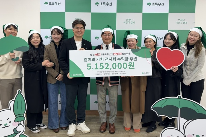 [대한경제=최종복 기자] 아동복지전문기관 초록우산(회장 황영기)은, 부천 하이파이브미술학원 5개 캠퍼스가 전시회 수익금 약 500만 원을 ‘초록우산 산타원정대’에 기부했다고 25일 밝혔다.