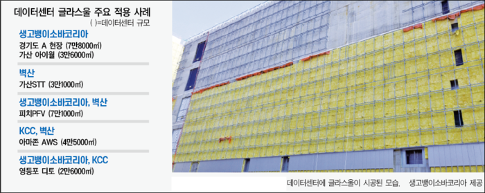 실제 국내 글라스울 제조사는 주요 데이터센터 건설현장에 제품을 공급하며 실적을 쌓고 있다. 대표적으로 생고뱅이소바코리아는 경기 고양시에 건설 중인 한 데이터센터에 글라스울 단열재를 납품했다. 이 센터는 연면적 7만8000㎡ 규모로, 이르면 내년 6월 완공 예정이다. 생고뱅이소바코리아 관계자는 “글라스울은 단열성이 뛰어나 에너지 손실을 최소화하고, 불연재라 화재안전에서도 강점이 있다”며 “벽체, 칸막이, 천장 등 다양한 부위에 폭넓게 적용된다”고 설명했다.