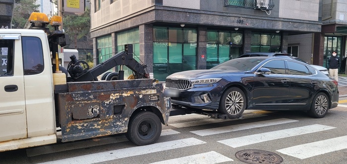 | 24일 경기도 조세정의과와 함께 고액·상습 지방세 체납자를 대상 가택수색으로 압류한 자동차. / 사진 : 광명시 제공 |