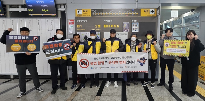 이번 캠페인은 의정부시니어클럽 불법카메라단속 참여자와 의정부경찰서, 의정부경전철의 연합 캠페인으로 진행되었으며 의정부 경전철 화장실을 중심으로 불법 카메라 설치 여부를 집중 점검했다.