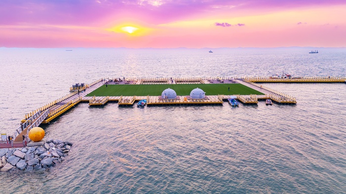 | 낙조와 함께하는 놀궁리 해상파크 모습 / 사진 : 홍성군 제공 |