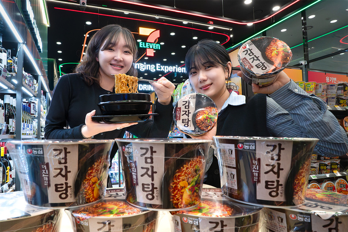 세븐일레븐이 농심과 협업해 ‘감자탕큰사발면’을 단독 출시했다. 이 제품은 전첨스프와 후첨스프로 나뉘어 얼큰한 국물 맛과 들깻가루 구수함을 동시에 표현했다. 감자ㆍ청경채 등 건더기를 넣었고 전자레인지 조리도 가능하다. 출시 기념으로 12월 한 달간 2+1 행사를 진행한다.