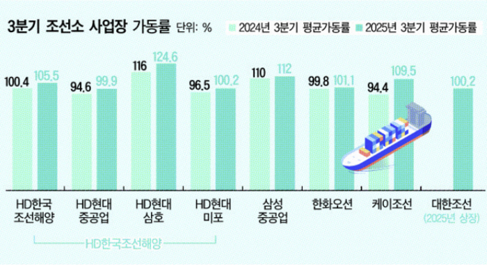 국내 주요 조선소 사업장 가동률 100% 돌파…HD현대삼호 124.6% ‘초가동’