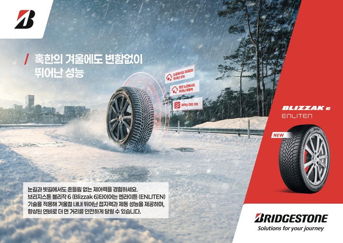 브리지스톤 타이어 코리아가 겨울용 타이어 최신 모델 블리작 6를 국내 시장에 출시했다고 28일 밝혔다.