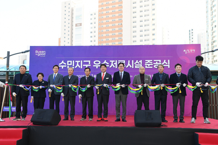 부산 동래구(구청장 장준용)은 지난달 28일 오전 11시 동래구 수민어울공원 일원에서 ‘수민지구 우수저류시설 설치사업’ 준공식을 개최하고, 저지대 상습 침수지로 여겨졌던 동래구 수민동 일원 지역 주민들의 안전 확보를 기념했다고 1일 밝혔다.