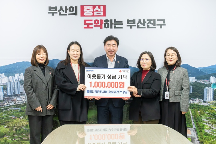 부산진구(구청장 김영욱)는 지방자치단체 건강증진사업 우수기관 선정되어 받은 포상금을 지역 이웃돕기 성금으로 기탁했다고 1일 밝혔다.