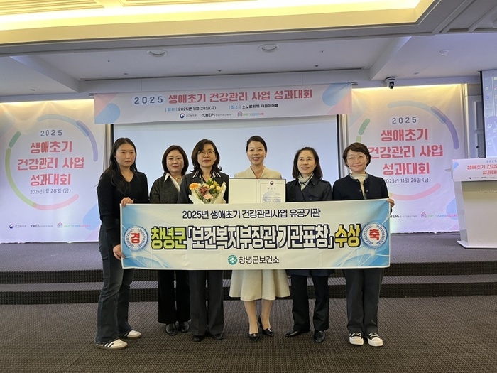 창녕군(군수 성낙인)은 지난달 28일 2025년 ‘생애초기 건강관리사업’ 운영 평가에서 우수기관으로 선정돼 보건복지부 장관 표창을 수상했다고 1일 밝혔다.