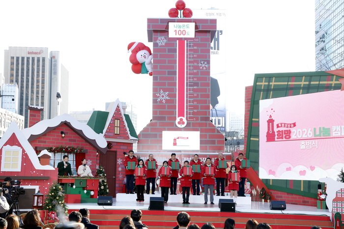 올해 모금 목표액은 4500억원으로, 1%인 45억이 모일 때마다 온도탑 수은주가 1도씩 올라간다.
