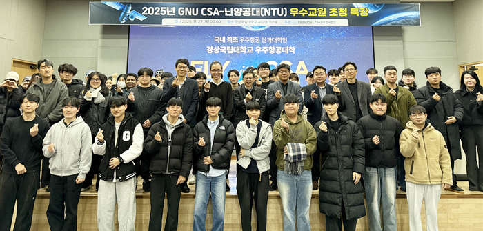 경상국립대학교(GNU·총장 권진회) 우주항공대학(CSA·학장 허기봉)은 지난달 27일 가좌캠퍼스 항공우주산학협력관(407동)에서 싱가포르 난양공과대학교(NTU, Nanyang Technological University)의 우주항공 분야 우수 교원을 초청해 ‘2025년 GNU CSA-NTU 우수교원 초청 교류협력 세미나’를 개최했다고 1일 전했다.