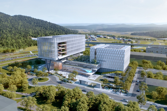 진입광장에서 삼성천으로 이어지는 외부 공간을 개방적으로 구성하고, 수변과 산 조망을 극대화하는 배치를 통해 주변 경관과 조화를 이룬 점도 눈길을 끈다. 서로 다른 성격을 지닌 두 개 시설은 매스와 입면 디자인을 통해 각각의 기술과 비전을 차별화했으며, 이들을 잇는 포디엄은 국가 위기 상황에도 신속히 대응할 수 있는 구조를 갖췄다.