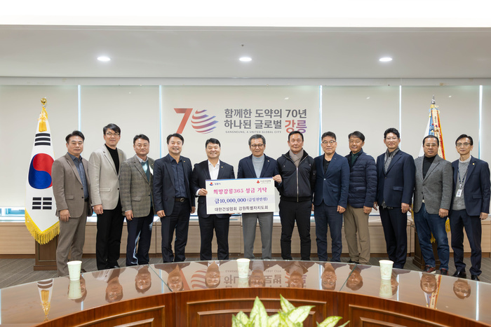[대한경제=김승수 기자] 대한건설협회 강원특별자치도회(회장 최상순)는 2일 강릉시청을 방문해 강릉시에 이웃돕기 성금 1000만원을 전달했다고 밝혔다.