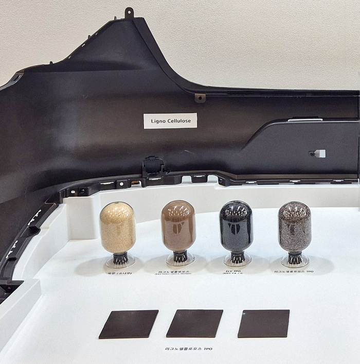 | 현대모비스가 목재를 가공한 신소재 리그노셀룰로스로 만든 범퍼 커버./사진: 현대모비스 제공 |