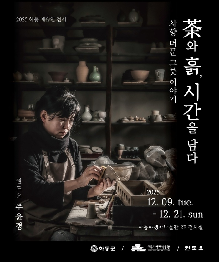 하동군 야생차박물관이 오는 12월 9일~21일 하동 지역에서 활동하는 도예가 주윤경 작가(권도요)의 도예전 ‘茶와 흙, 시간을 담다 : 차향 머문 그릇 이야기’를 개최한다고 2일 밝혔다.