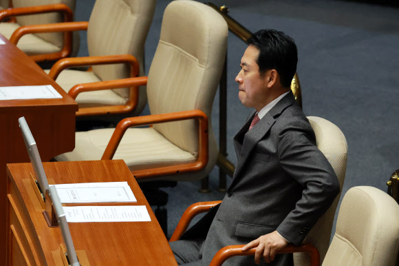 국민의힘 장동혁 대표가 2일 국회 본회의에 참석해 있다./사진:연합뉴스