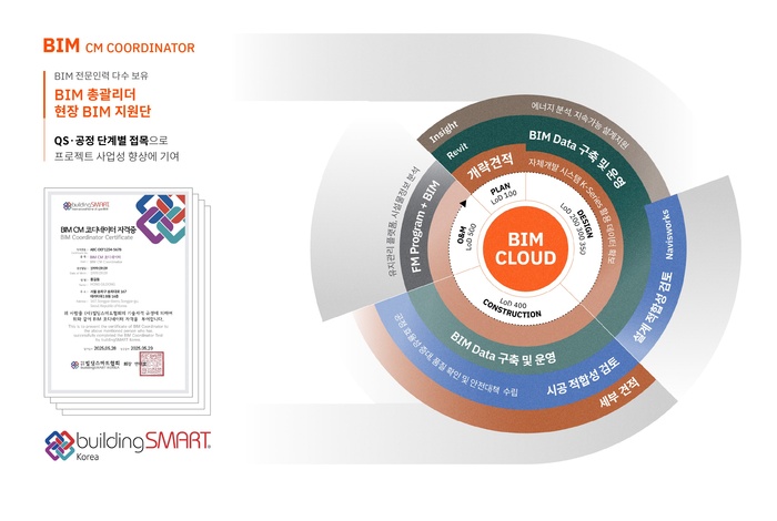 또 CM 역량에 디지털 기술을 결합한 ‘BIM CM 코디네이터 전담조직’을 운영하며 프로젝트 품질과 실행력을 높였으며, QSㆍ공정ㆍ원가 등 단계별 확장을 적용해 전 단계를 통합 관리하는 ‘데이터 기반 플랫폼’을 확립했다.