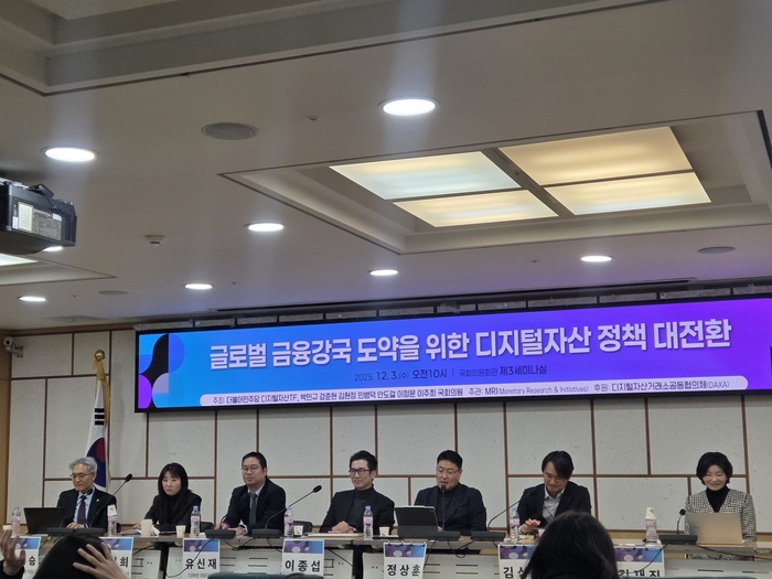| 3일 서울 여의도 국회에서 더불어민주당 디지털자산TF가 개최한 '글로벌 금융강국 도약을 위한 디지털자산 정책 대전환' 세미나에서 토론이 진행되고 있다./사진=김동섭 기자 |