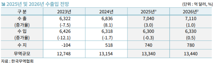 한국무역협회(회장 윤진식) 국제무역통상연구원은 이러한 내용을 골자로 하는 ‘2025년 수출입 평가 및 2026년 전망’ 보고서를 5일 발표했다.