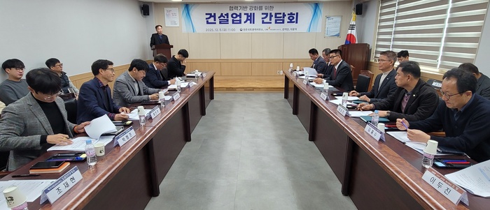 간담회에서 강동국 회장은 “일부 건설현장 감리업체의 부당행위로 인해 공정 지연과 금전적 손해 등 피해가 다수 발생하고 있다”며 “감리업체의 부당행위 근절과 공무원 직접 감리제도 환원 등의 제도적 장치 마련이 필요하다”고 건의했다. 이어 “발주청이 공사용지를 확보하지 해 착공 후 공사기간이 연장되거나 공사가 중단되는 사례가 자주 발생한다”며 “발주기관은 반드시 용지보상·인허가 등 행정적인 절차를 마무리한 후 발주할 것을 요청한다”고 강조했다.