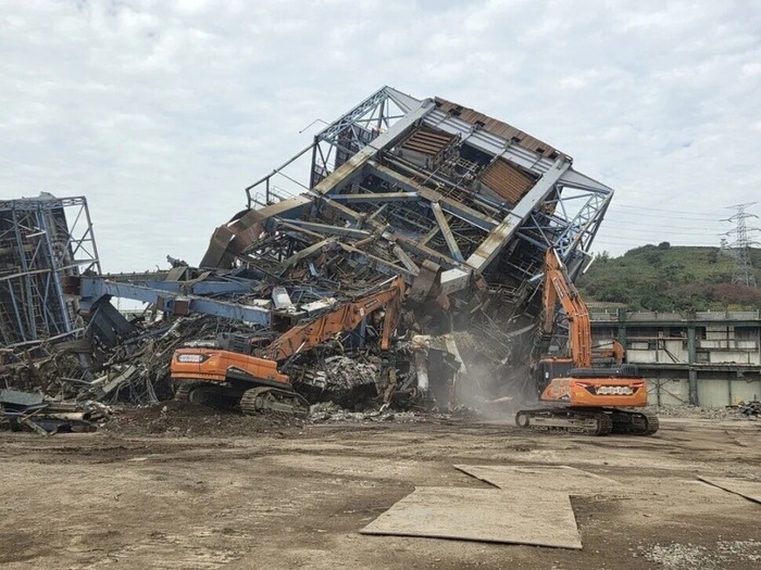 사고 당시 작업자들은 보일러 타워 25m 지점에서 발파 전 타워가 목표한 방향으로 쉽게 무너질 수 있도록 기둥과 철골 구조물을 미리 잘라 안정성을 낮추는 취약화 작업을 하고 있었다. 이 때문에 지상부터 14m 사이 설비류와 철골은 모두 철거된 상태였고, 63m 높이의 타워는 네 개 기둥만 남아 상부를 지탱하는 불안정한 구조였다.