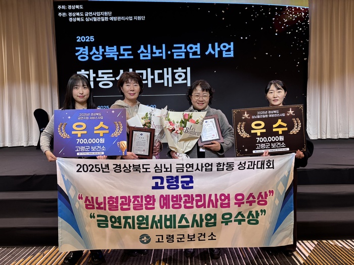 [대한경제=민향심 기자] 고령군보건소는 지난 5일 안동에서 열린 2025년 심뇌혈관질환 예방관리사업 금연사업 합동 성과대회에서 두 사업 모두 우수기관으로 선정됐다.