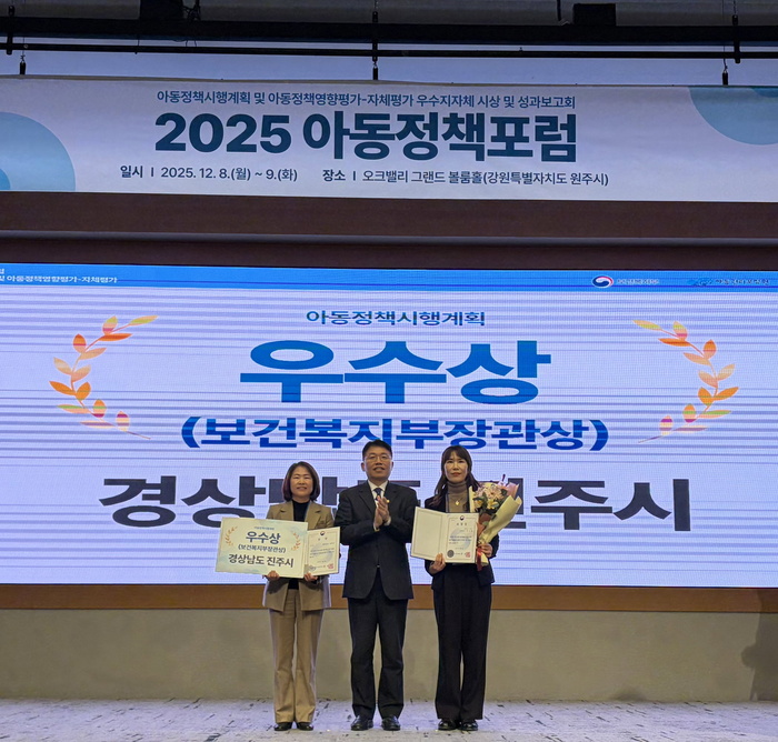 진주시는 8일 강원도 원주시 오크밸리 리조트에서 열린 ‘제13회 아동정책포럼’에서 2024년 아동정책 시행계획 추진실적 평가에서 ‘우수’ 지자체로 선정돼 보건복지부 장관상을 수상했다.