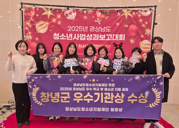 창녕군학교밖청소년지원센터는 지난 5일 경상남도청소년지원재단 주관 ‘2025년 경상남도 우수 학교 밖 청소년 지원 공모’에서 학교밖청소년지원센터 우수기관상 수상의 쾌거를 달성했다고 8일 전했다.
