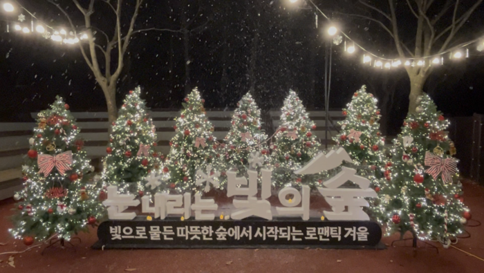 빛의 숲은 오후 5시부터 10시까지 운영되며, 곳곳에 설치된 조명과 크리스마스 장식이 동화 같은 풍경을 완성한다. 주말과 성탄 연휴에는 인공 눈 장치가 가동돼 실제 눈이 흩날리는 듯한 겨울 감성을 더한다. 방문객들은 산책로를 따라 펼쳐지는 빛의 터널과 포토존을 거닐며 자연과 어우러진 감각적 연출을 체험할 수 있다.