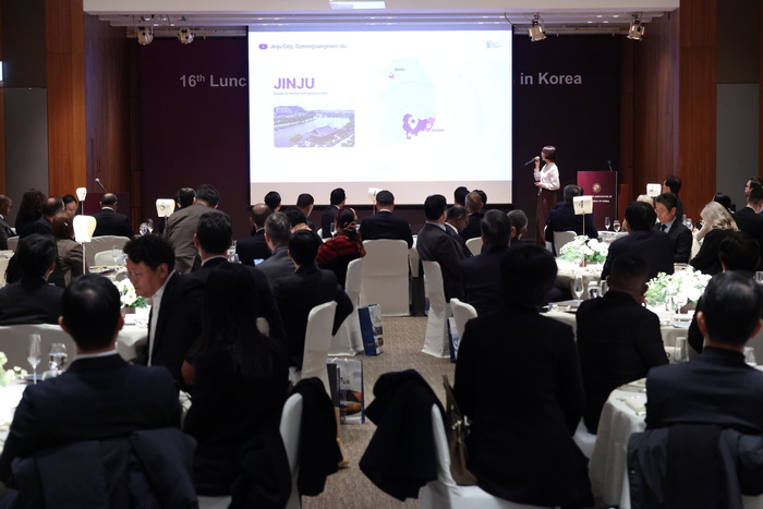 | 진주시는 지난 5일 서울 신라호텔 영빈관에서 개최된 ‘제16회 주한외국공관장 초청 간담회’에 참가해 진주의 글로벌 도시 브랜드를 전 세계에 알렸다. / 사진 : 진주시 제공 |