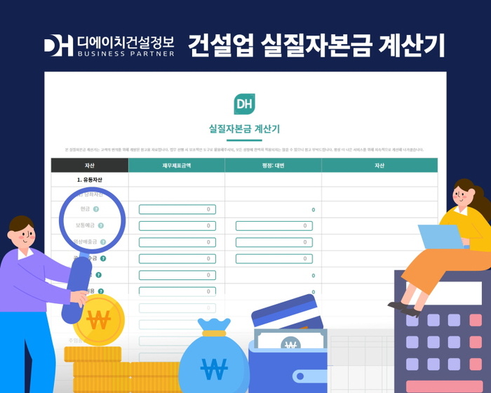연말이 다가오며 건설업계가 면허 유지를 위한 자본금 요건 점검으로 분주해진 가운데, 디에이치건설정보는 다가오는 2025년 건설업 연말결산 시즌을 맞아 건설사들이 복잡한 자본금 산정 과정을 간편하게 해결할 수 있도록 ‘실질자본금 자동 계산기’를 무료로 배포한다고 밝혔다.