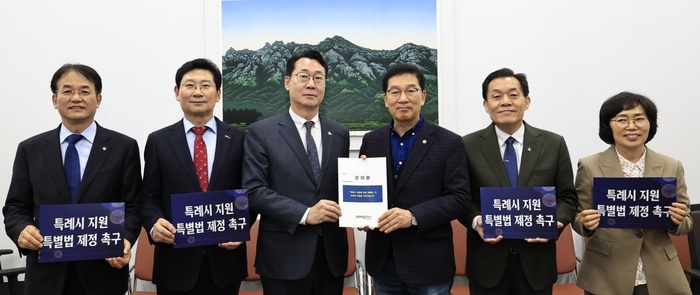 이에 대한민국특례시시장협의회는 이날 국회 행정안전위원회(위원장 신정훈)를 공식 방문해 ‘특례시 지원 특별법’의 조속한 제정을 촉구하는 건의문을 전달하고, 법안 심사가 신속히 진행될 수 있도록 행정안전위원회가 적극 나서달라고 요청했다. 필요 시 입법 공청회 개최에도 적극 협조하겠다는 뜻도 전달했다.