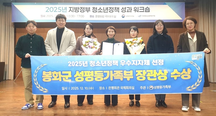 ▲ 봉화군, ‘2025년 청소년정책 우수지자체’ 선정…성평등가족부 장관상 수상