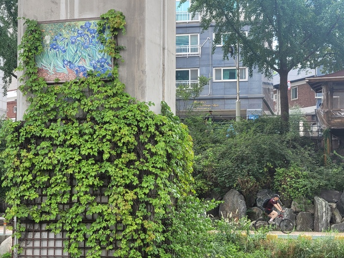 지금은 그림 대신 담쟁이 같은 식물이 몇몇 교각을 감싸고 있다. 나름 운치가 있다.