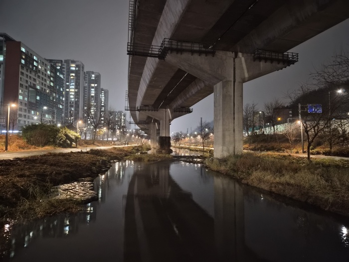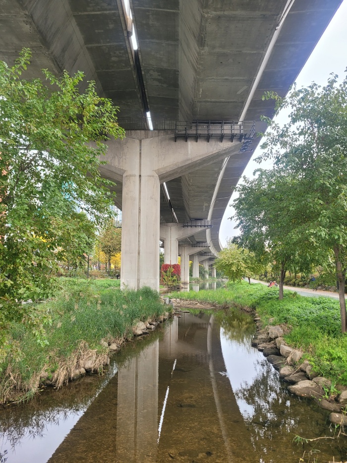 홍제천 위로는 내부순환로가 함께 달린다. 밑에서 보면 홍제천의 천장 같은 도로 하부와 도로를 받치는 교각들이 하천과 함께 이어진다. 콘크리트와 하천, 개발과 자연이라는 두 이미지가 대비되면서도 어우러지는 묘한 풍경이다.